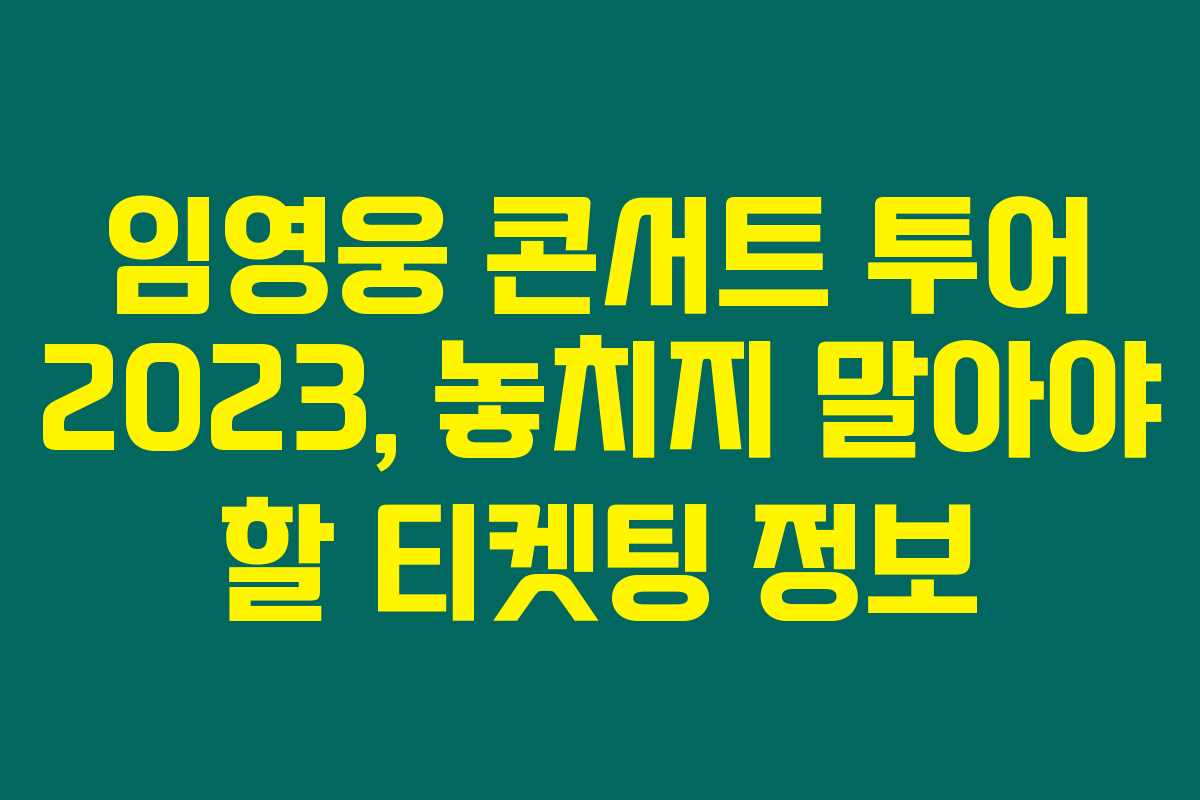 임영웅 콘서트 IM HERO TOUR 2023이 드디어 시작됩니다! 공연을 사랑하는 팬이라면 기대감이 크겠지요? 이제 막 시작한 티켓팅 정보와 가격, 일정을 함께 알아보겠습니다. 임영웅 콘서트 티켓팅 일정과 가격을 확인하면 더욱 즐거운 관람이 될 거예요. 아래를 읽어보시면, 콘서트 관람을 위한 모든 필요한 정보를 한눈에 확인할 수 있습니다!
