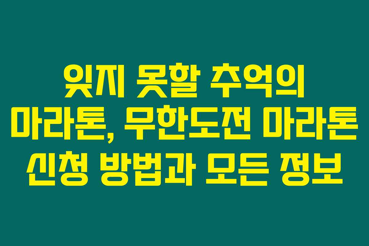 마라톤은 방송에서 보던 멤버들과 직접 함께 할 수 있는 특별한 기회입니다. 무한도전 마라톤은 정말 잊지 못할 경험이 될 거예요. 기억이 새록새록 떠오르며 친구들과 함께 뛰는 것, 기대되지 않나요? 티켓이 매진되기 전에 서둘러 준비하세요!