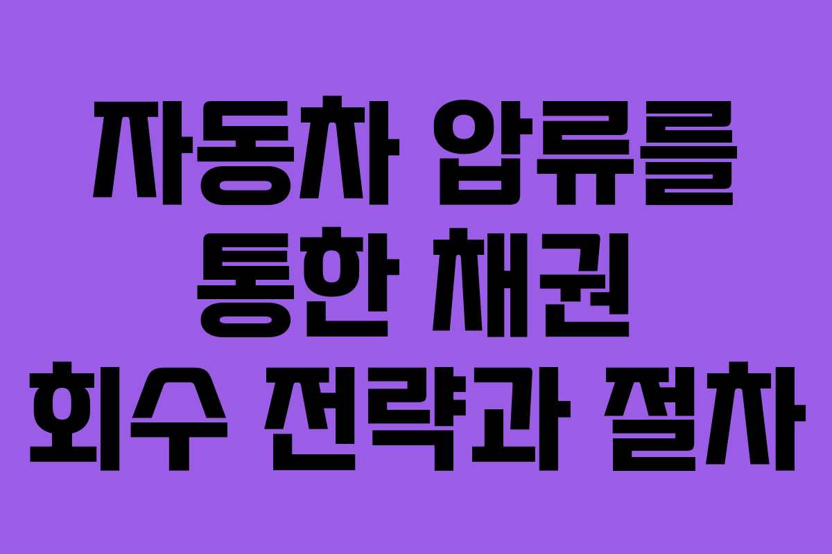 자동차 압류는 채권 회수의 중요한 방법 중 하나로, 이를 통해 채무자에게 실질적인 압박을 가할 수 있다. 그러나 이 과정에서 발생하는 다양한 변수와 리스크를 고려하여 채권 전문과 상담 후 진행하는 것이 바람직하다.