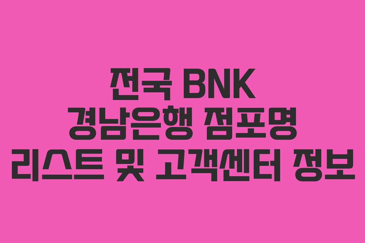 전국 BNK 경남은행 점포명 리스트 및 고객센터 정보