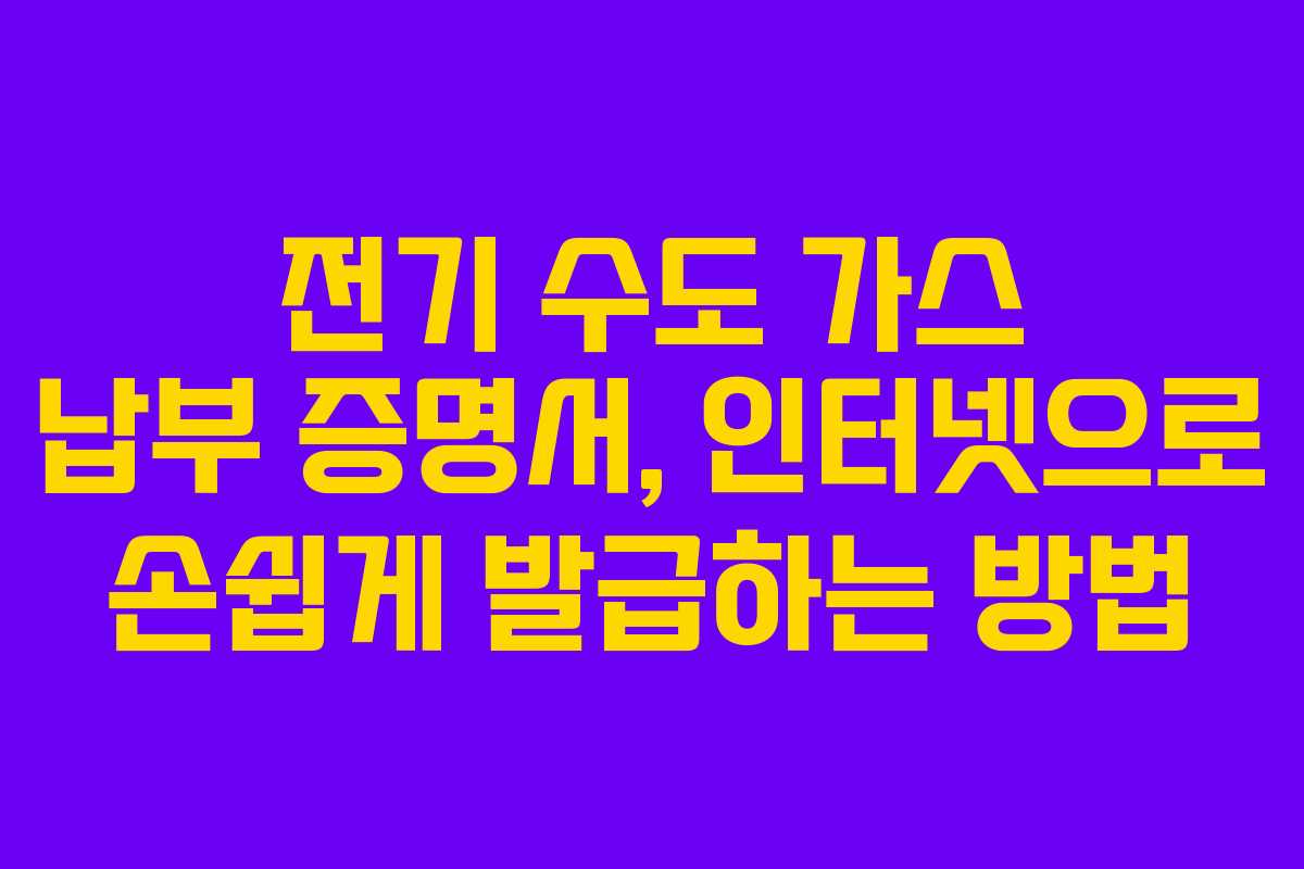 전기, 수도, 가스 납부 증명서는 여러 상황에서 필수적인 서류입니다. 대출 신청이나 이사와 같은 중요한 순간에 필요한 이 문서를 인터넷을 통해 간편하게 발급받을 수 있는 방법에 대해 알아보겠습니다. 이 글을 통해 필요 시 언제든지 활용할 수 있는 유용한 정보를 제공하겠습니다.