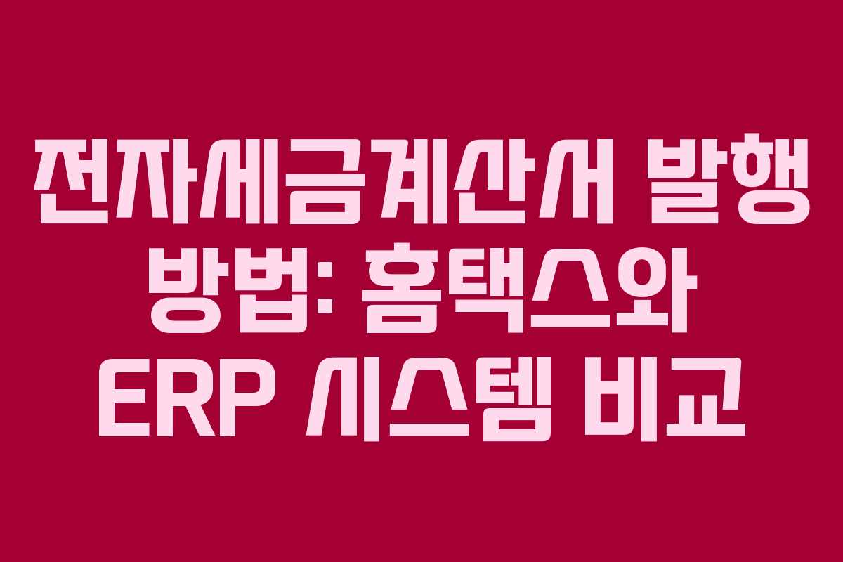 전자세금계산서를 발행하는 방법은 여러 가지가 있으며, 그 중에서도 홈택스와 ERP 시스템은 대표적인 선택지입니다. 특히 홈택스는 승인 절차 없이 간편하게 전자세금계산서를 발행할 수 있어 소규모 사업자에게 유리합니다.