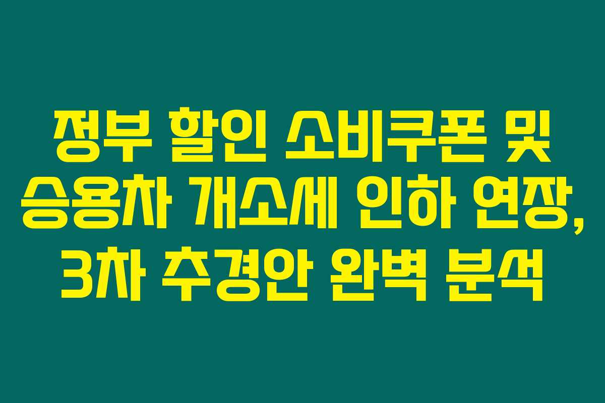 정부의 3차 추경안은 코로나19로 위축된 경제를 살리기 위한 다양한 혜택을 제공하고 있습니다. 특히 할인 소비쿠폰과 승용차 개소세 인하의 연장은 많은 소비자들에게 실질적인 도움이 될 것입니다. 아래를 읽어보시면, 각 정책의 최신 내용과 함께 어떻게 혜택을 누릴 수 있는지 궁금증이 해소될 겁니다.