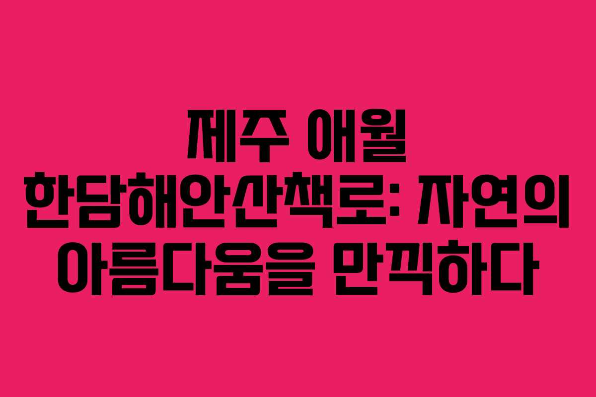 제주 애월 한담해안산책로는 제주도를 방문하는 이들에게 꼭 가봐야 할 명소로 자리 잡고 있습니다. 이곳은 제주의 자연이 선사하는 경관을 감상하며 여유로운 시간을 보낼 수 있는 완벽한 장소입니다. 특히, 해질 무렵에 방문하면 환상적인 일몰을 경험할 수 있어 더욱 추천합니다.