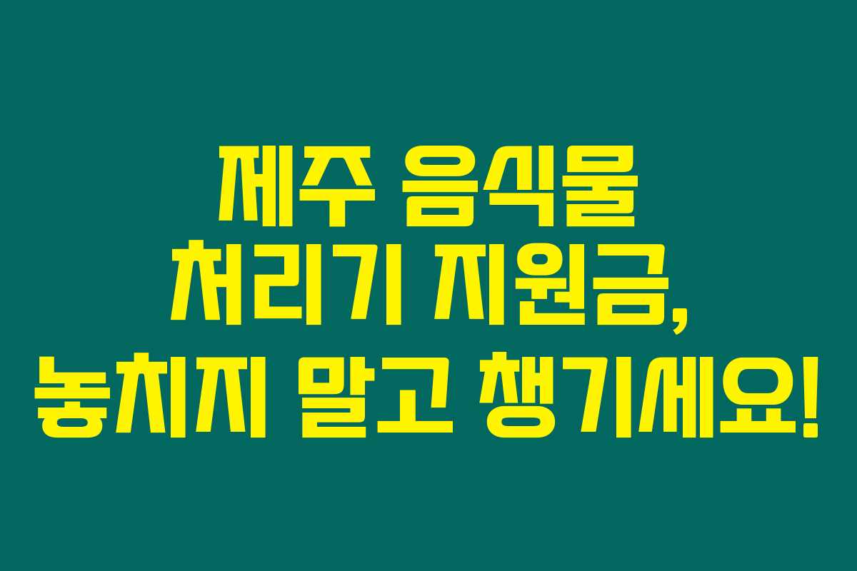 제주 음식물 처리기 지원금, 환경을 지키고 생활을 윤택하게 만들 기회를 놓치지 마세요!