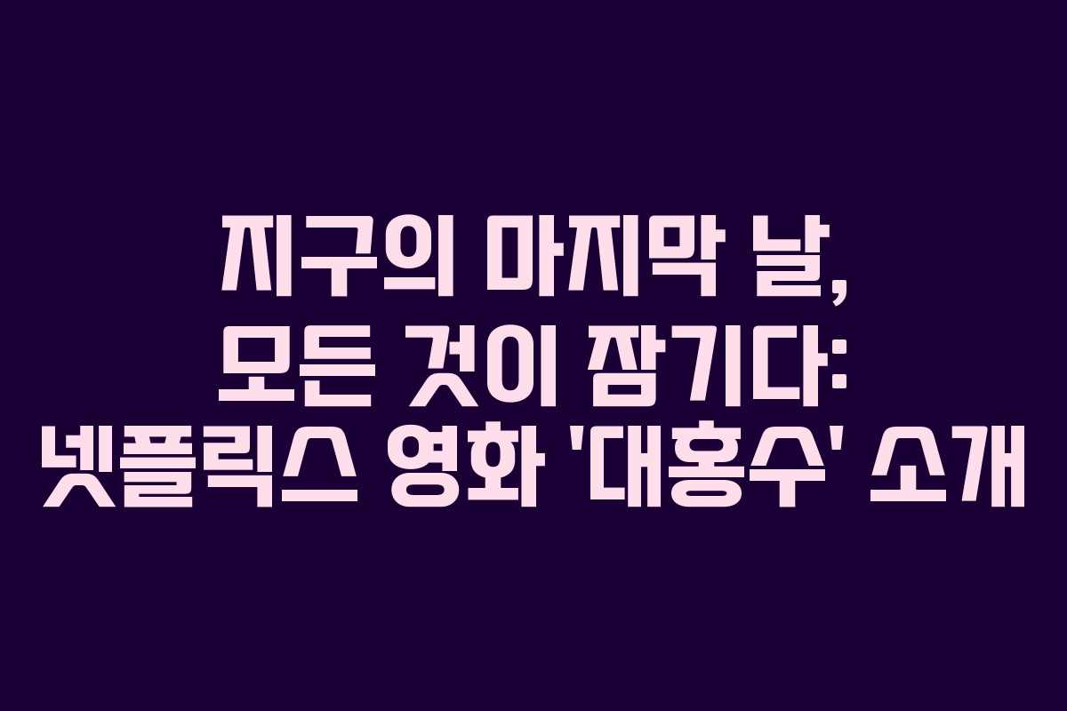 지구의 마지막 날, 모든 것이 잠기다: 넷플릭스 영화 '대홍수' 소개