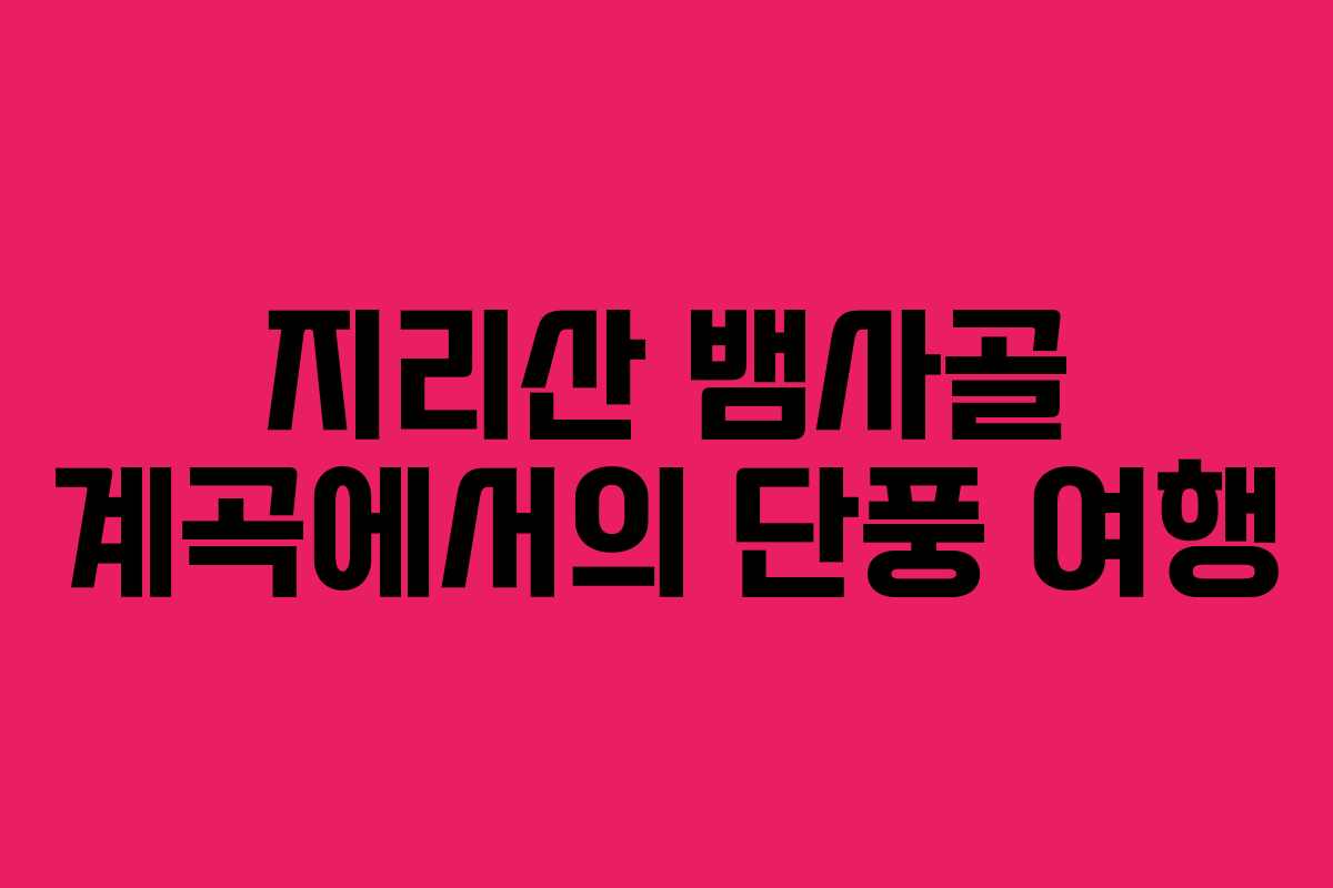 가을의 정취를 만끽할 수 있는 지리산 뱀사골 계곡은 단풍 시즌에 더욱 매력적입니다. 이번 블로그에서는 뱀사골의 아름다운 단풍을 경험할 수 있는 코스를 소개합니다.