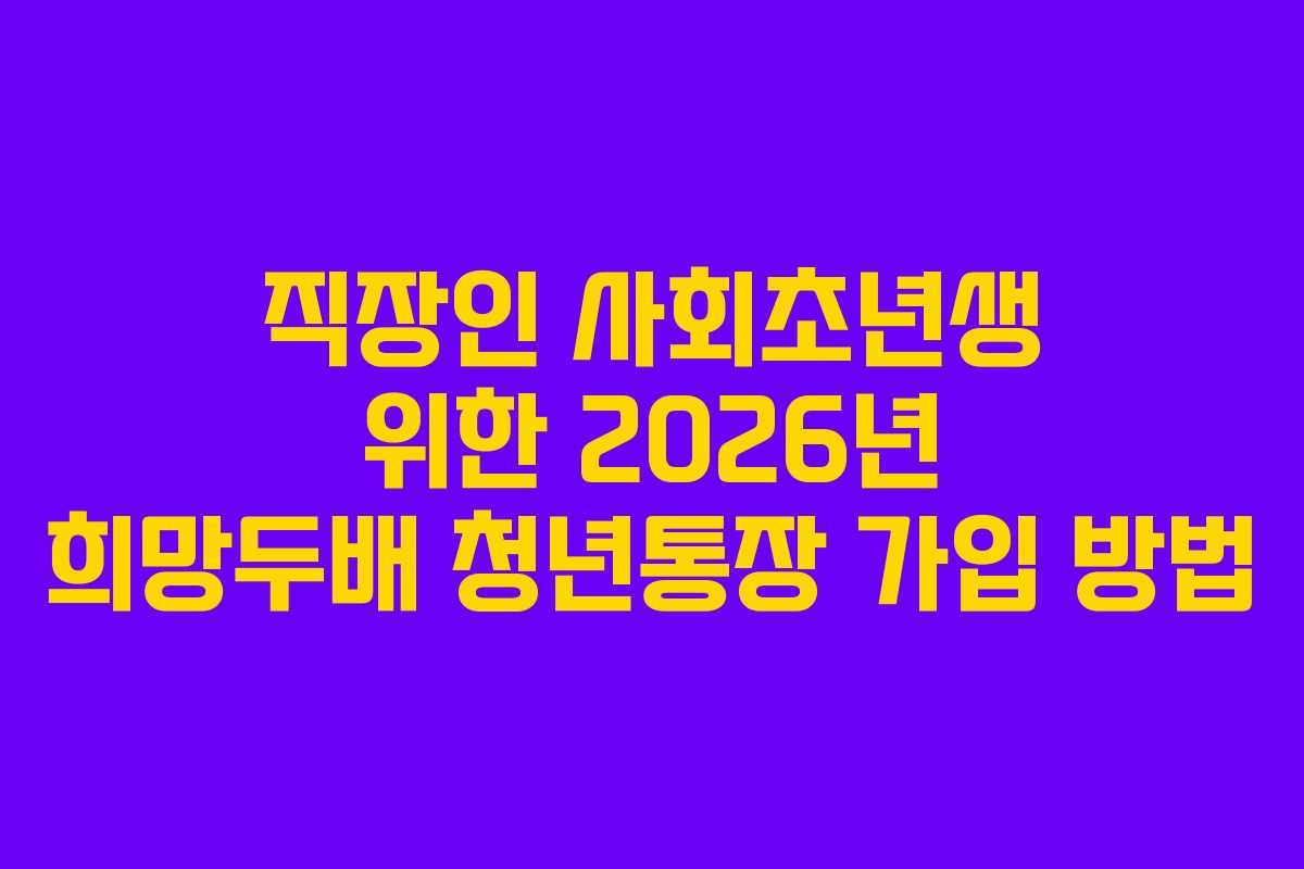2026년, 새로운 시작을 꿈꾸는 많은 청년들이 직장에 첫 발을 내딛습니다. 저 또한 사회 초년생으로서의 설렘과 불안이 공존했던 기억이 생생합니다. 그런 저에게 ‘희망두배청년통장’이라는 제도가 큰 도움이 되었고, 지금 여러분께 그 경험을 나누고자 합니다. 이 블로그 글에서는 2026년 희망두배청년통장에 대한 모든 정보를 공유하며, 제가 어떻게 이 제도를 활용했는지를 이야기하겠습니다.
