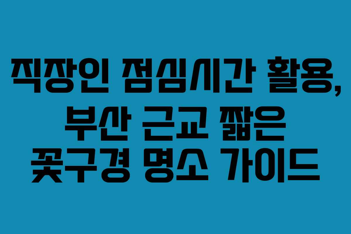 부산에서 근무하는 직장인이라면 점심시간을 활용해 짧은 꽃구경을 즐기고 싶어하는 분들이 많을 것입니다. 특히 봄이 오면, 화사한 꽃들이 만개하는 계절이 찾아오죠. 오늘은 부산 근교에서 쉽게 접근할 수 있는 꽃구경 명소들을 소개하며, 직장인들이 점심시간에 간편하게 방문할 수 있는 팁을 함께 나누어 보겠습니다.