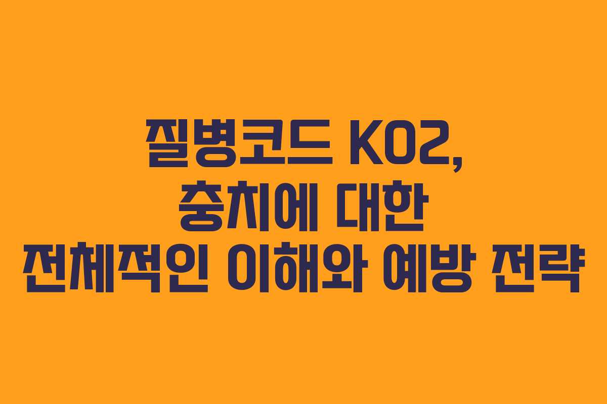충치는 많은 사람들이 겪는 치아 질환 중 하나로, 치과를 방문하는 이유 중 상당수를 차지합니다. 질병코드 K02는 바로 이 충치를 의미하며, 입안의 박테리아가 음식물 찌꺼기를 분해하며 발생하는 질병입니다. 오늘은 충치에 대해 알아보고, 예방과 치료 방법 및 실비 청구 관련 정보를 제공하겠습니다.
