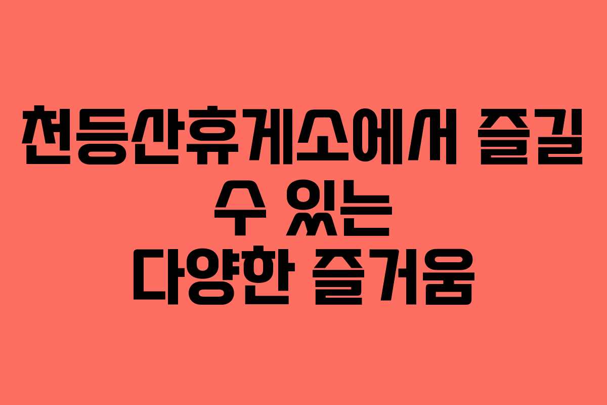 여행 중 잠시 휴식을 취할 수 있는 천등산휴게소는 알찬 경험을 제공합니다. 이곳에서의 짧은 휴식이 여행의 즐거움을 더해 줄 것입니다. 주말이나 휴가철에는 혼잡할 수 있으니 미리 계획하고 방문하는 것이 좋습니다.
