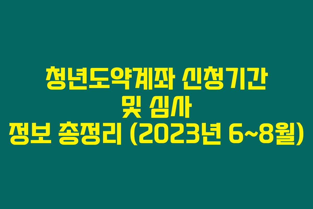 청년도약계좌에 관심 있는 청년들이라면 주목해주세요. 청년도약계좌는 청년들의 저축을 지원하기 위해 만들어진 제도로, 꽤 많은 청년들이 신청을 하고 있는 상황이에요. 2023년 6월부터 8월까지의 신청 및 심사 일정에 대해 자세히 알아보도록 할게요. 신청을 고려 중이라면 가이드라인을 꼭 확인해보세요.