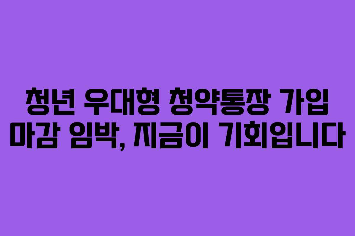 청년 우대형 청약통장 가입 마감 임박, 지금이 기회입니다