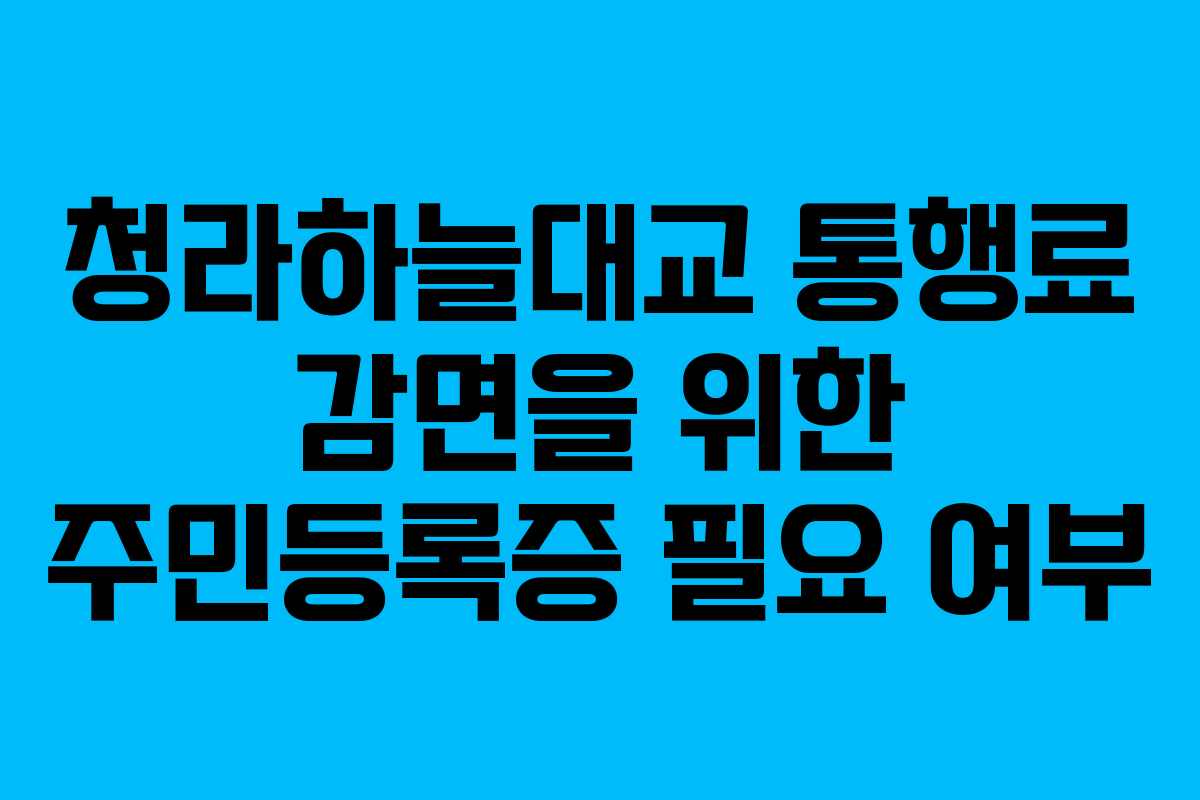청라하늘대교는 인천의 주요 교통축으로, 많은 사람들이 일상적으로 이용하는 도로입니다. 하지만 통행료 문제는 여전히 많은 사람들에게 고민거리로 남아 있습니다. 특히 2026년부터 시행되는 청라하늘대교 통행료 감면 정책과 관련하여 주민등록증 제출의 필요 여부에 대한 질문이 많이 제기되고 있습니다. 이번 글에서는 제가 직접 경험한 사례를 바탕으로 이 문제를 풀어보고자 합니다.