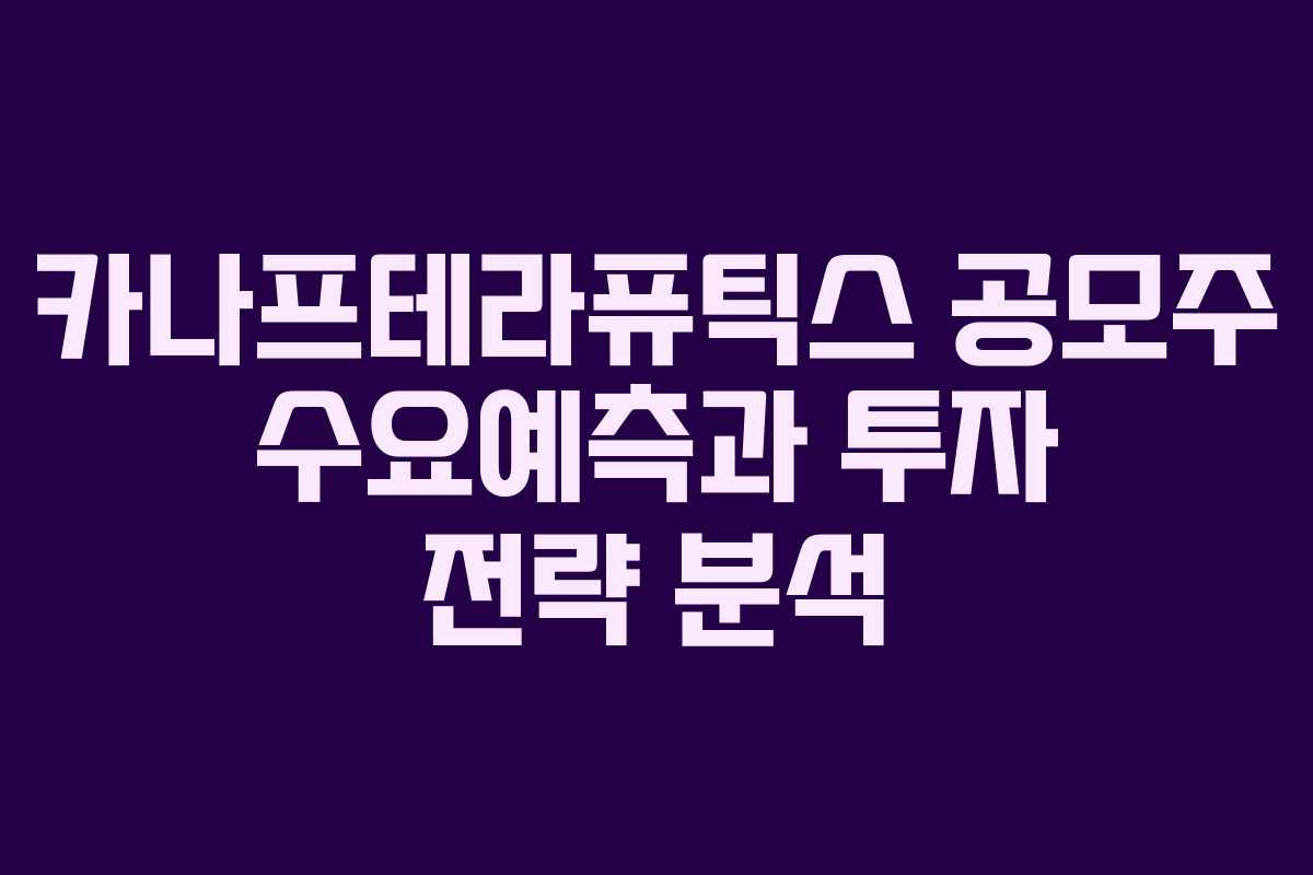 카나프테라퓨틱스 공모주 수요예측과 투자 전략 분석