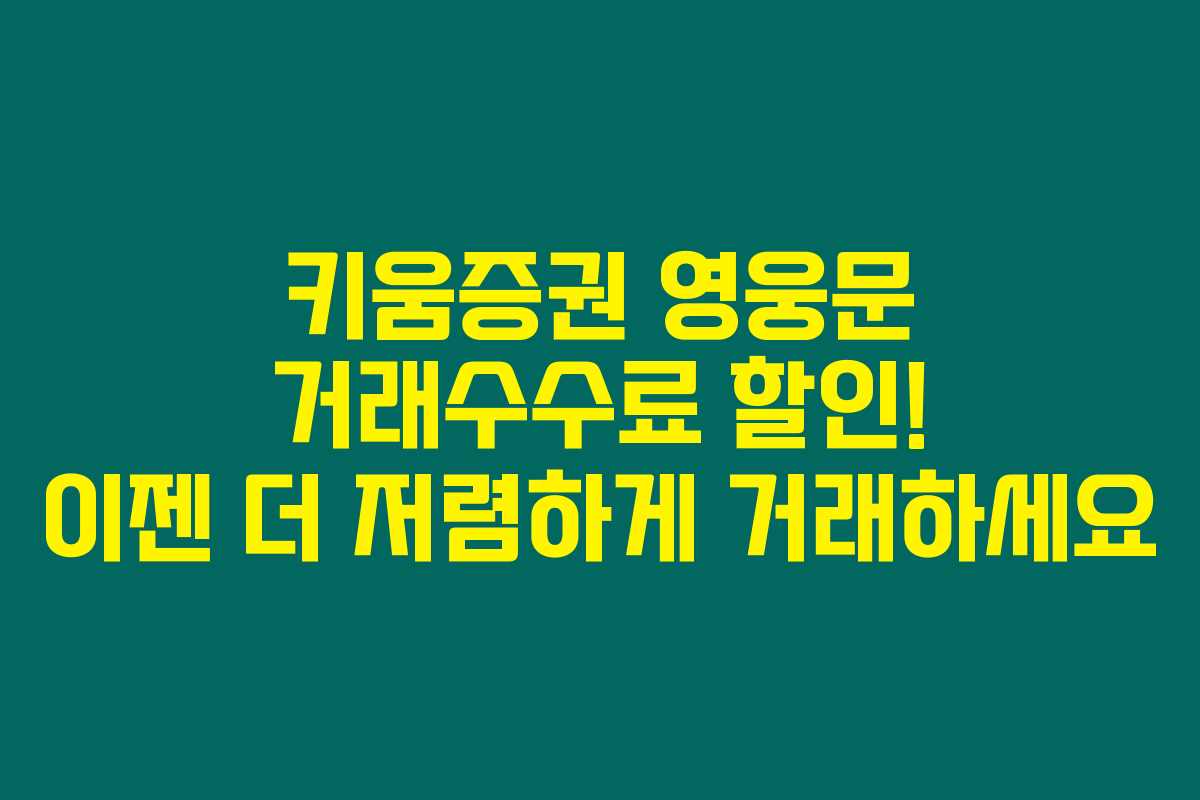 키움증권 거래수수료, 어떻게 줄일 수 있을까?