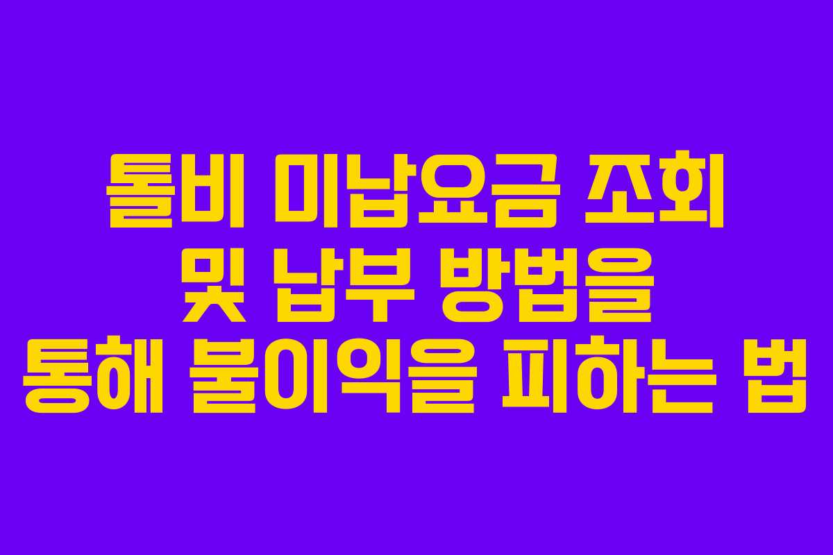 이러한 절차를 따르면 톨비 미납요금 관리가 보다 원활하게 이루어질 수 있다. 특히, 미납요금을 제때 납부하는 것은 불필요한 연체료를 피하는 데 도움이 된다.