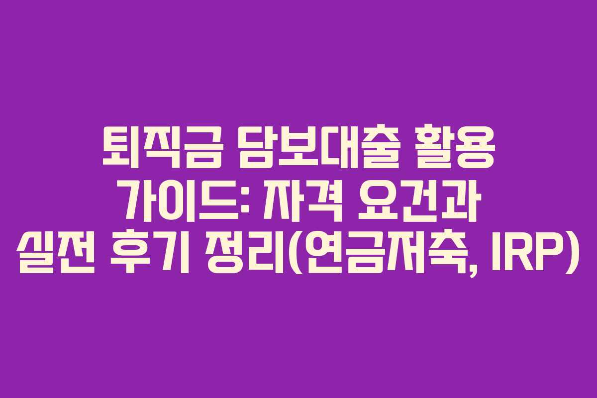 아래를 읽어보시면 퇴직금 담보대출의 기본 구조와 자격 요건, 은행별 차이, 연금저축/IRP 활용 팁까지 한눈에 파악할 수 있습니다.