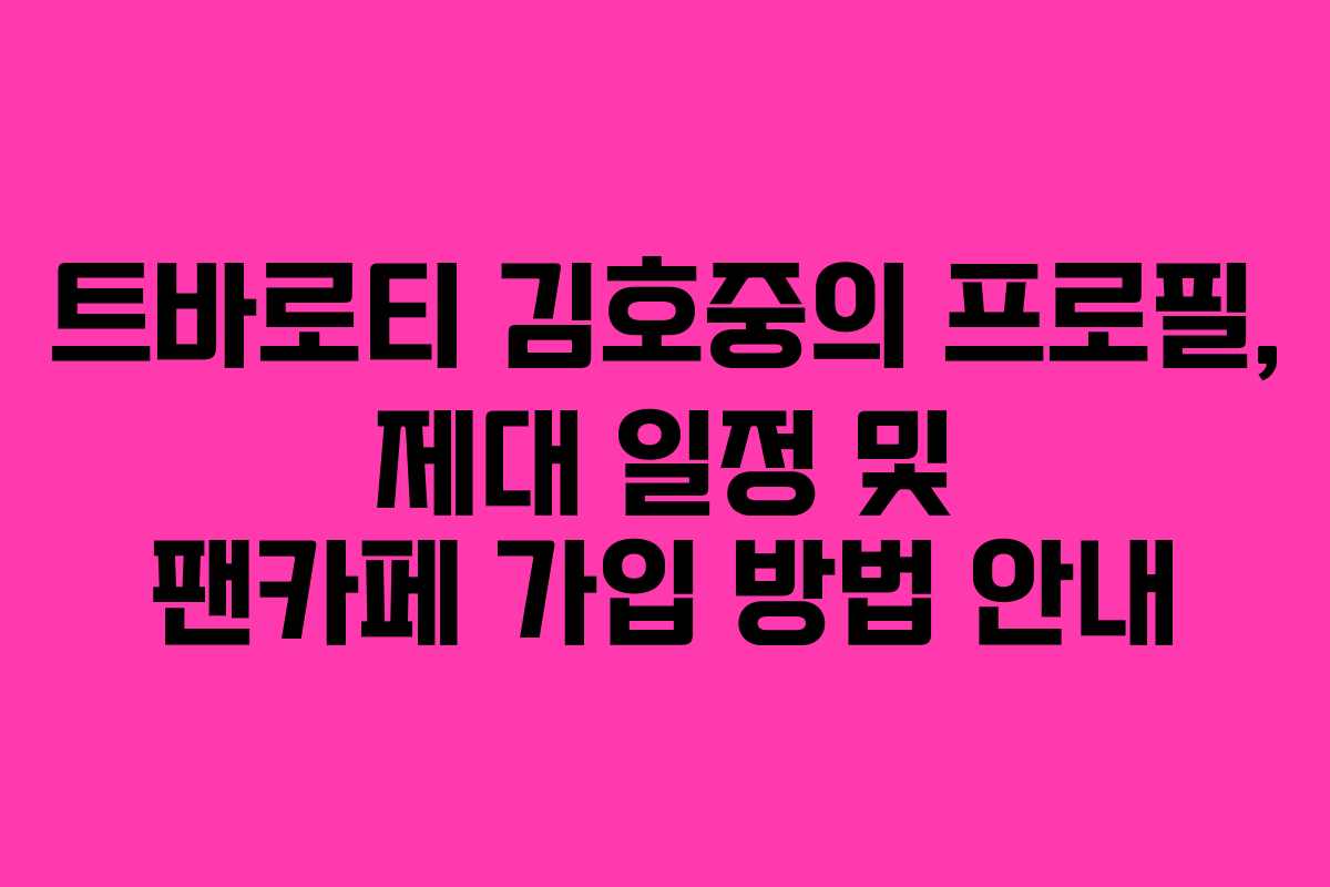 김호중은 많은 팬들에게 사랑받는 아티스트로, 그의 활동과 팬카페 정보는 팬들에게 큰 관심을 받고 있다. 본문에서는 김호중의 프로필, 제대 날짜, 팬카페 회원 수와 가입 방법을 자세히 설명한다.