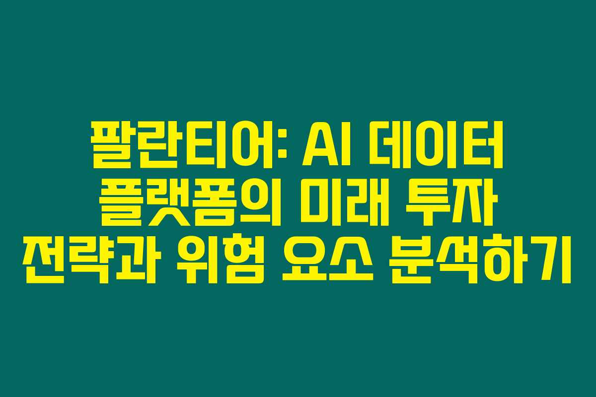 팔란티어는 AI 데이터 플랫폼 시장에서 매우 중요한 위치를 차지하고 있으며, 장기적인 성장 가능성을 내포하고 있어요. 앞으로의 전망에 대한 깊은 통찰을 가지고 투자 결정을 하시는 것이 안정적이겠지요.