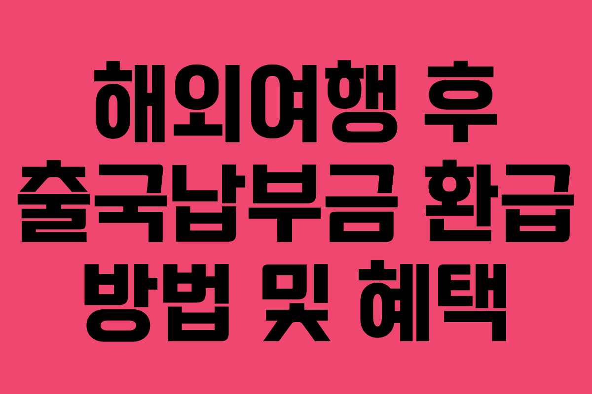해외여행을 다녀온 후, 놓치기 쉬운 환급 혜택이 있습니다. 출국납부금 환급서비스를 통해 항공권 결제 시 포함된 출국납부금을 돌려받을 수 있는 방법을 자세히 안내드립니다. 환급 대상과 신청 방법, 환급 금액에 대한 정보를 한눈에 확인해보세요.