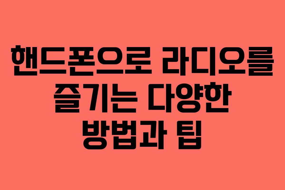 핸드폰에서 라디오를 청취하는 것은 많은 사람들이 일상에서 즐기는 활동입니다. 다양한 방법으로 손쉽게 라디오를 듣고 즐길 수 있으며, 여기서는 그 방법들을 자세히 설명하겠습니다.