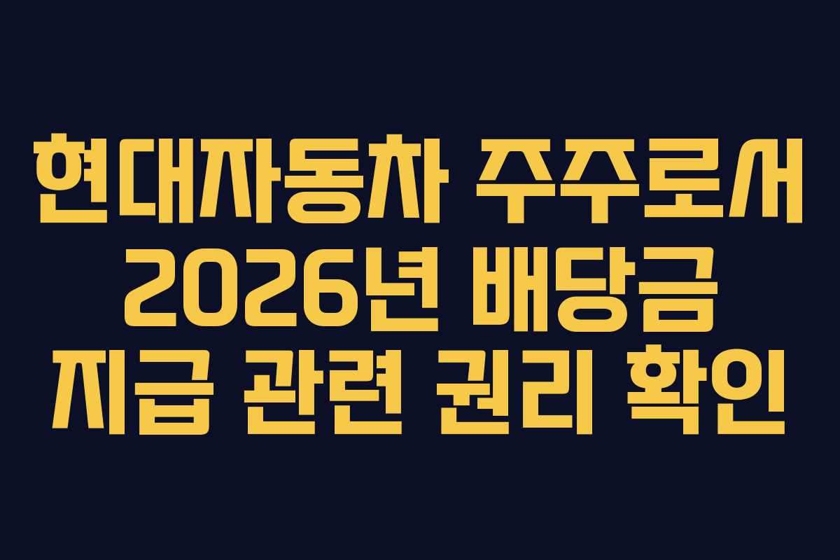 - 현대차의 배당금 전략: 2026년 투자 전망