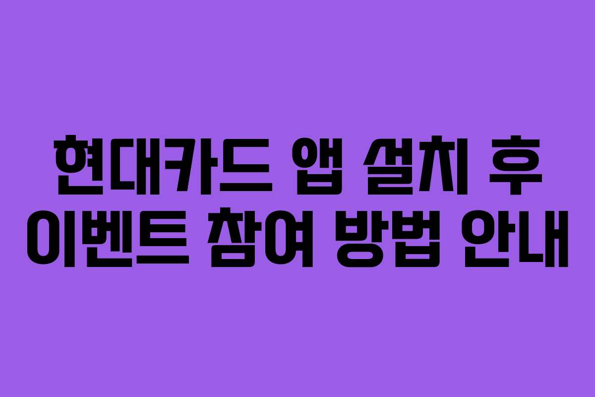 현대카드 앱은 사용자가 다양한 이벤트에 참여할 수 있는 플랫폼으로도 기능합니다. 이벤트 참여는 앱 내에서 손쉽게 이뤄질 수 있으며, 다음과 같은 단계를 따르면 됩니다.