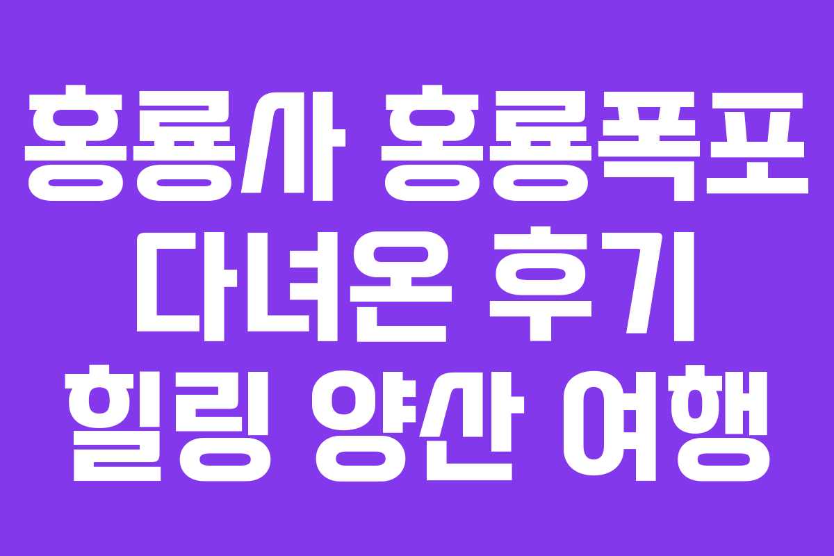 양산에 위치한 홍룡사는 아름다운 풍경과 함께 힐링을 제공하는 장소로 유명합니다. 최근에 다녀온 홍룡사와 홍룡폭포의 경험을 공유하고자 합니다.