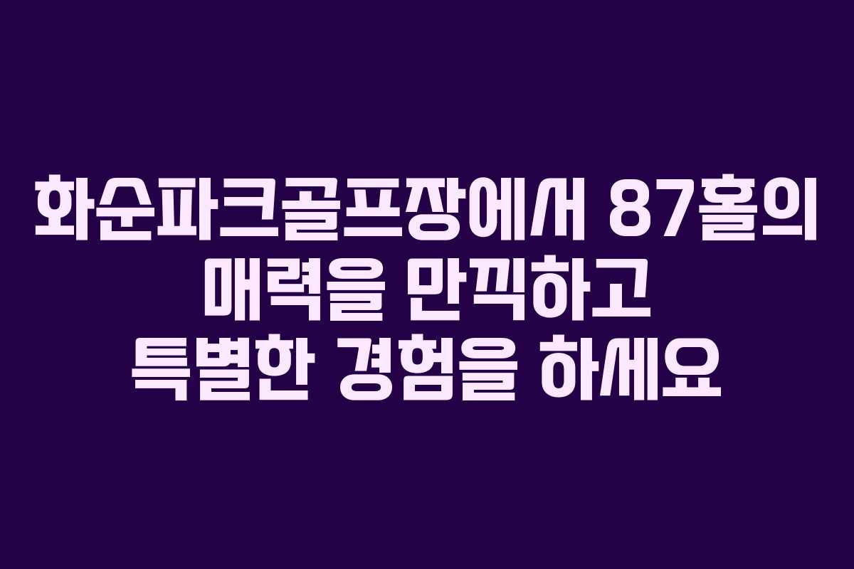 전라남도 화순군 청풍면에 위치한 화순파크골프장은 국내 최대 규모의 파크골프장으로 87홀의 풍부한 코스를 자랑합니다. 이곳은 다양한 난이도의 코스를 통해 초보자부터 숙련자까지 모두가 즐길 수 있는 공간으로, 예약 방법과 요금, 위치 정보를 자세히 안내합니다.