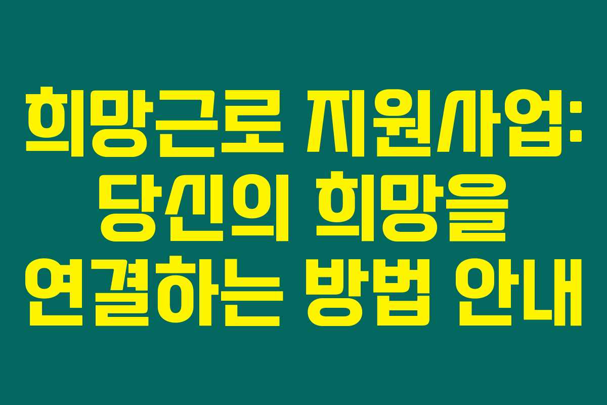 희망근로 지원사업: 당신의 희망을 연결하는 방법 안내