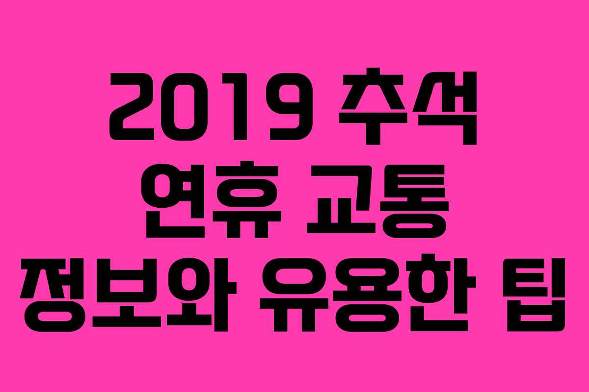 추석 연휴는 가족과 함께하는 중요한 시간입니다. 이 시기에는 많은 사람들이 고향으로 돌아가거나 여행을 떠나기 때문에 교통 혼잡이 심해질 가능성이 높습니다. 2019년 추석 연휴에는 귀성 및 귀경길에 필요한 다양한 교통 대책이 마련되어 있으니, 이를 잘 활용하여 안전하고 편안한 이동을 계획할 수 있습니다.
