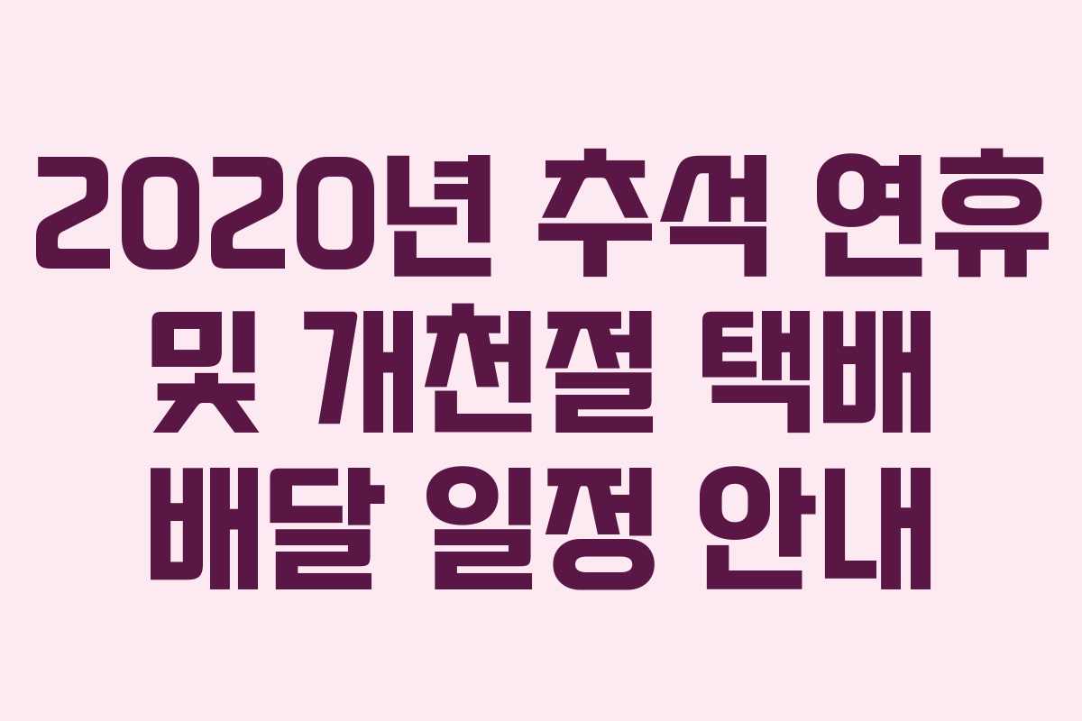 2020년 추석 연휴와 개천절에 택배 서비스를 이용하는 분들을 위해, 주요 택배사의 집하 및 배달 마감 일정을 정리했습니다. 이 정보를 통해 연휴 기간 동안 택배 발송 계획을 세우시는 데 도움이 되길 바랍니다.