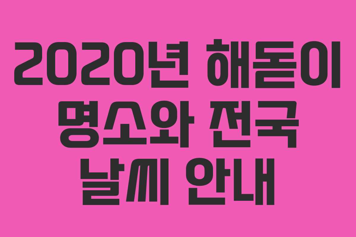 2020년 새해를 맞이하여 해돋이를 보기 위한 명소와 날씨 정보를 알아보겠습니다. 일출 시간을 포함한 날씨 예보를 통해 멋진 해돋이를 경험해보세요.