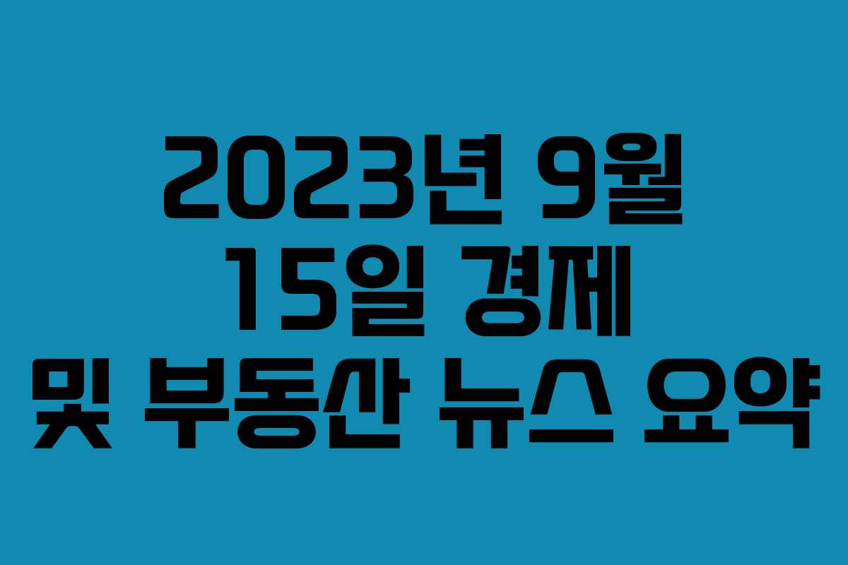2023년 9월 15일 경제 및 부동산 뉴스 요약