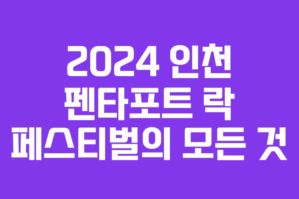 2024년 인천 펜타포트 락 페스티벌은 송도달빛축제공원에서 개최되며, 3일 동안 다양한 공연이 예정되어 있다. 관람 시간은 매일 오전 11시부터 오후 11시까지로, 아티스트의 공연 시간을 미리 체크하면 더욱 알찬 관람이 가능할 것이다.