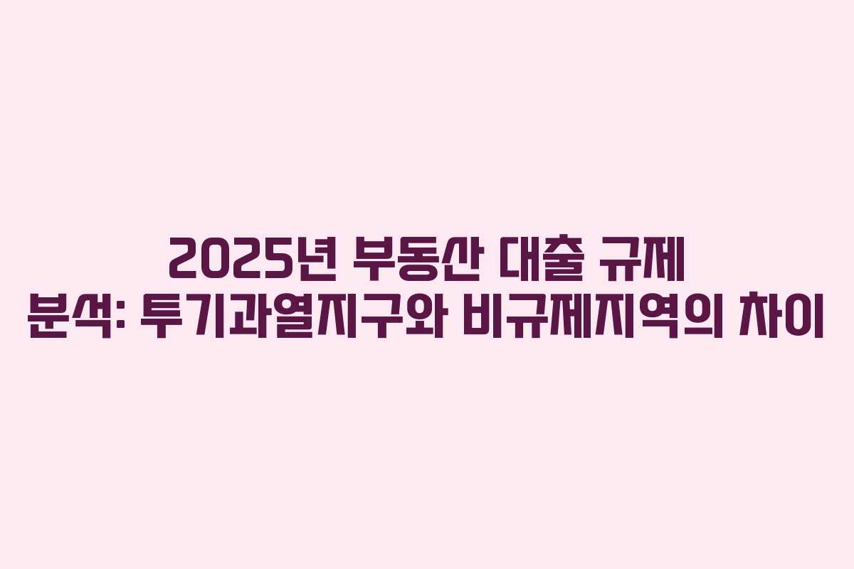 부동산 시장에서 대출 규제는 주택 구매에 있어 중요한 요소로 작용합니다. 특히, 투기과열지구와 비규제지역 간의 대출 한도 차이는 투자 전략 및 거주 선택에 큰 영향을 미칩니다. 2025년 기준으로 이 두 지역의 대출 관련 정보와 전략을 살펴보겠습니다.