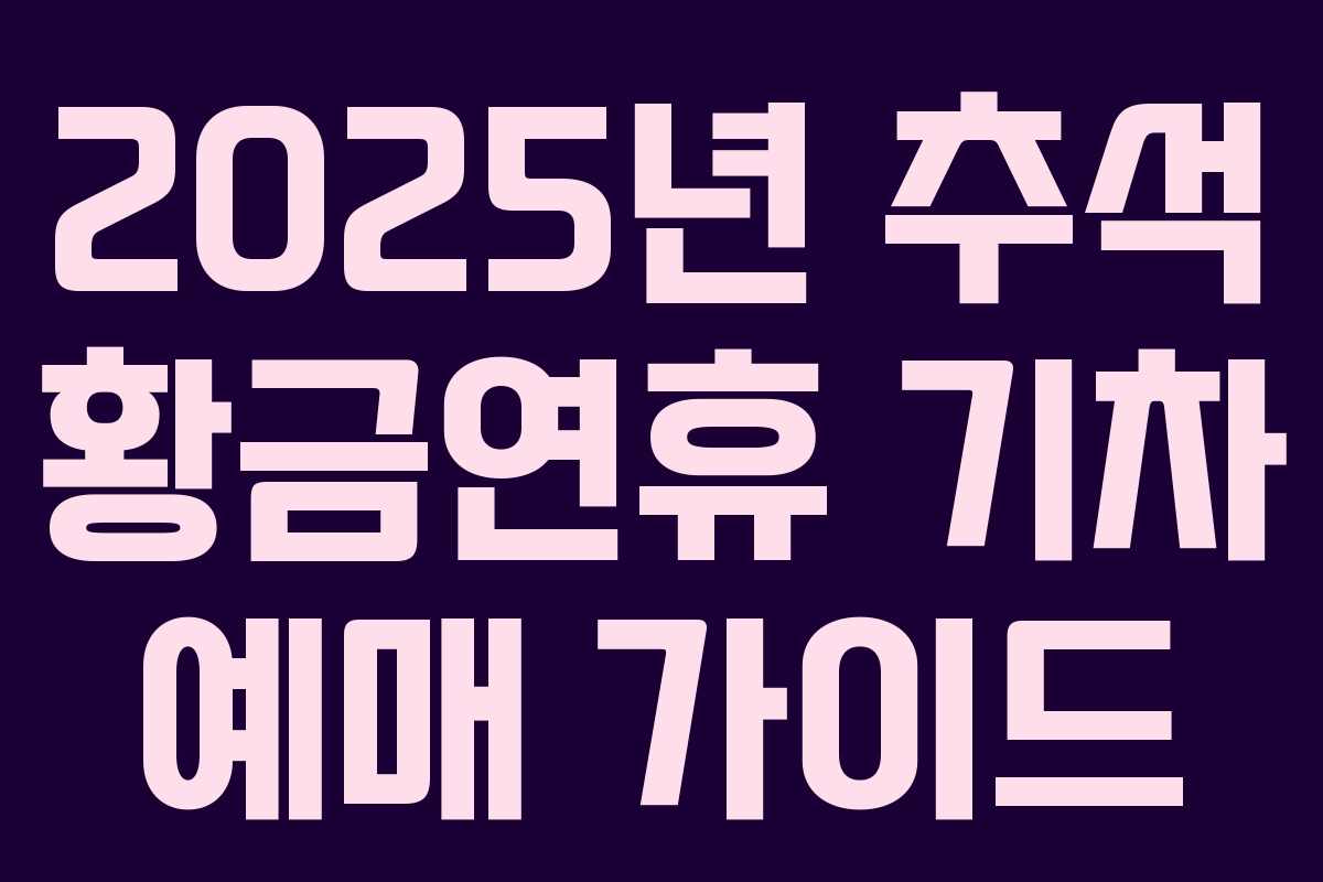 2025년 추석은 10월 6일(월)로, 그에 따른 황금연휴는 10월 2일(목)부터 10월 12일(일)까지 이어집니다. 개천절과 한글날이 포함되어 있어 열차 예매가 매우 치열할 것으로 예상됩니다.