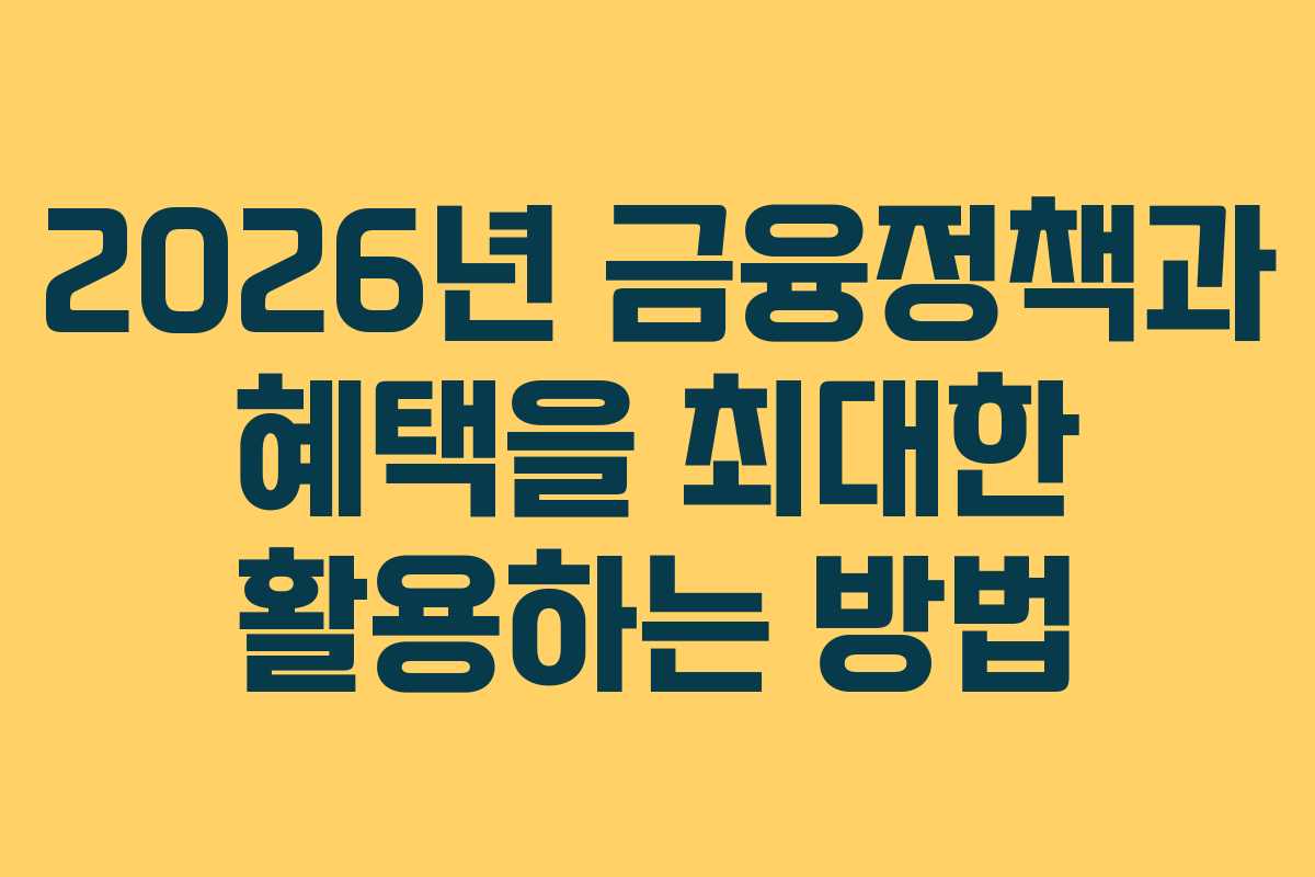 2026년의 금융 지원 제도를 최대한 활용하기 위한 전략을 알아보자.