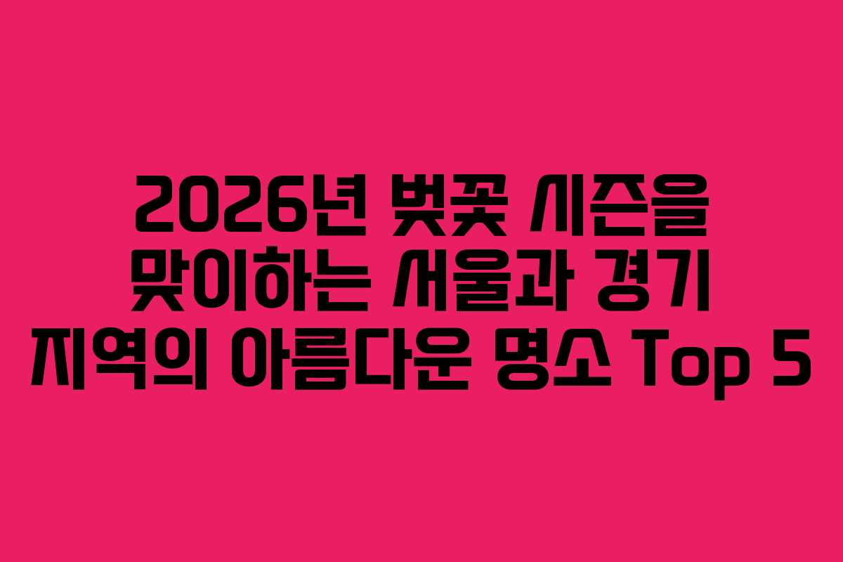 봄이 다가오면 벚꽃의 아름다움을 만끽할 준비를 해야 합니다. 2026년에는 서울과 경기 지역에서 특별한 벚꽃 명소를 찾아 소중한 순간을 만들어보세요. 벚꽃 시즌은 매년 조금씩 변동이 있지만, 일반적으로 3월 말에서 4월 초에 만개하는 경향이 있습니다. 이 시기에 맞춰 준비해 최고의 꽃놀이를 즐길 수 있도록 하세요. 지금부터 서울과 경기 지역에서 가장 아름다운 벚꽃을 감상할 수 있는 다섯 곳을 소개합니다.