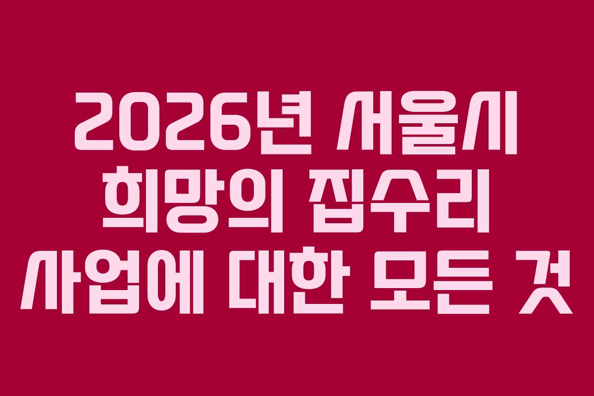 서울시는 경제적 어려움을 겪고 있는 가구가 보다 쾌적하고 안전한 주거 환경을 조성할 수 있도록 돕기 위해 희망의 집수리 사업을 운영하고 있다. 이 사업은 2026년 기준으로 취약계층을 위한 집수리 비용을 지원하며, 최대 250만 원까지 지원이 가능하다. 이 글에서는 희망의 집수리 사업의 지원 대상, 신청 방법, 지원 항목 등을 자세히 알아보겠다.