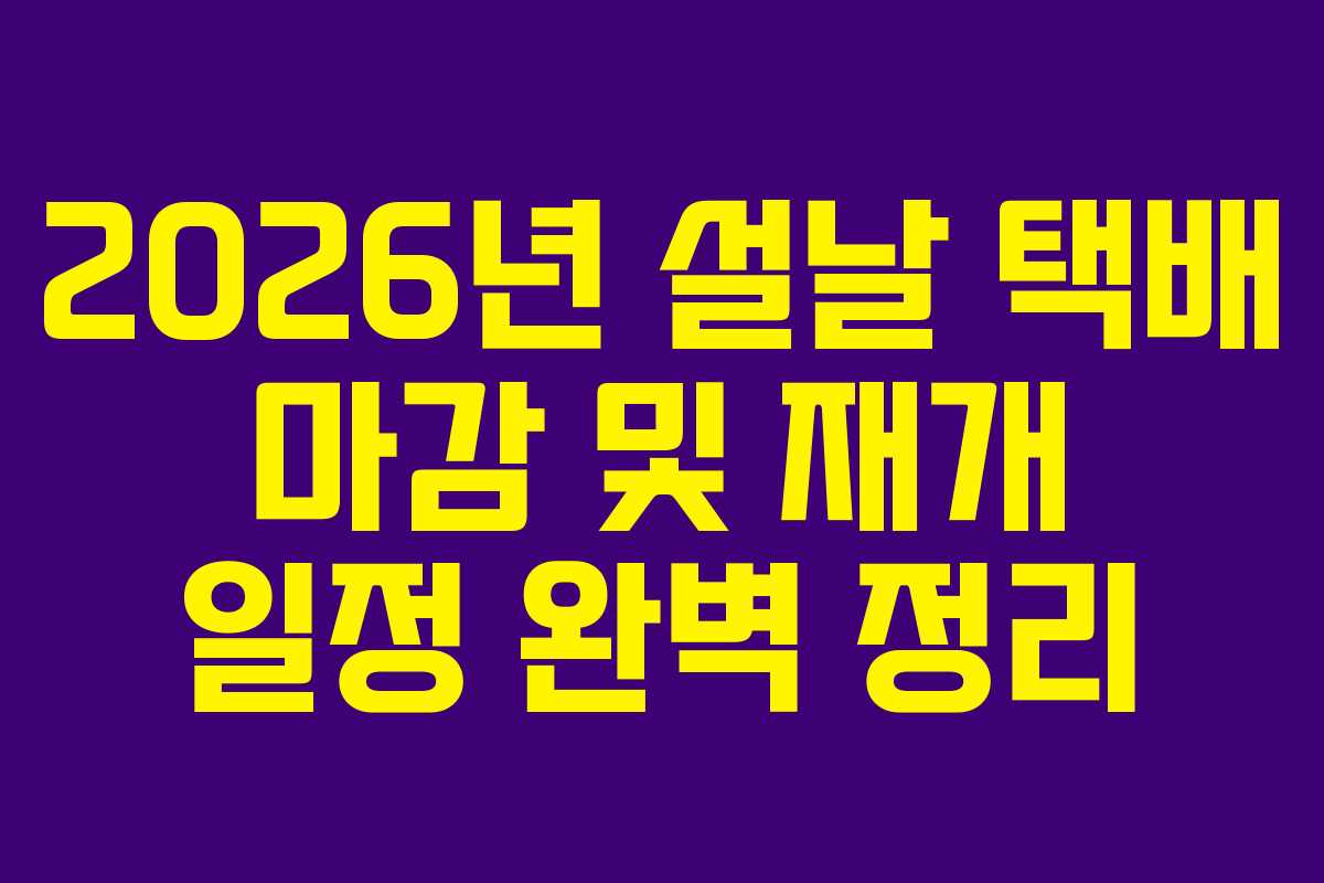 2026년 설날을 맞이하여 택배 서비스의 마감일과 재개일에 대한 정보는 아래와 같다. 명절 직전의 택배 서비스는 특히 중요한데, 이 시기에 마감일을 놓치면 배송이 지연될 수 있다. 이에 따라 소비자들은 미리 계획을 세워야 한다.