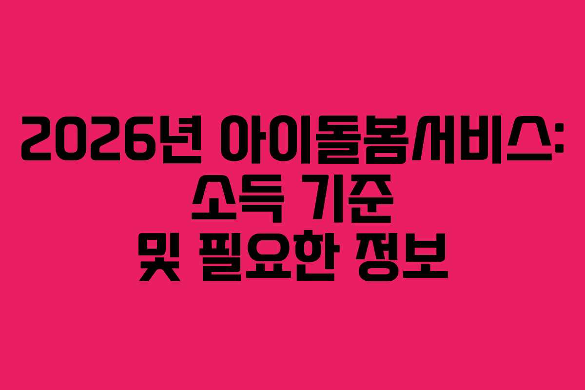 부모의 일상이 점점 바빠지는 가운데, 자녀 양육에 어려움을 겪는 가정에 큰 도움이 되는 아이돌봄서비스는 정부의 지원으로 제공되며, 이를 통해 부모들은 안심하고 업무에 전념할 수 있게 됩니다. 이번 글에서는 2026년 기준 아이돌봄서비스의 소득 기준, 서비스 유형, 신청 방법 등을 자세히 살펴보겠습니다.