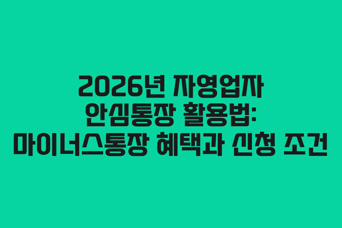 2026년 자영업자 안심통장 신청 조건 및 지원 한도