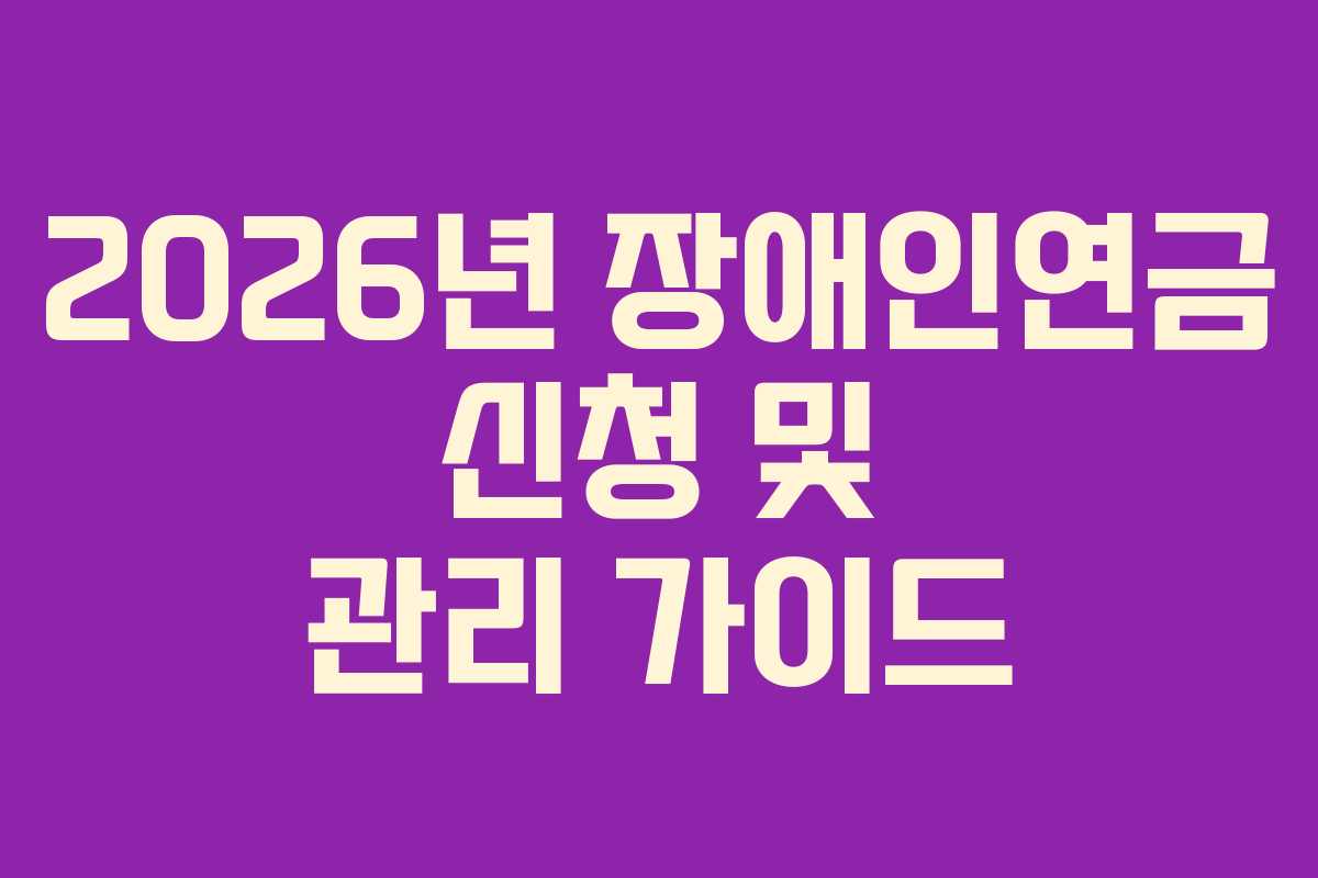 2026년 장애인연금 신청 및 관리 가이드