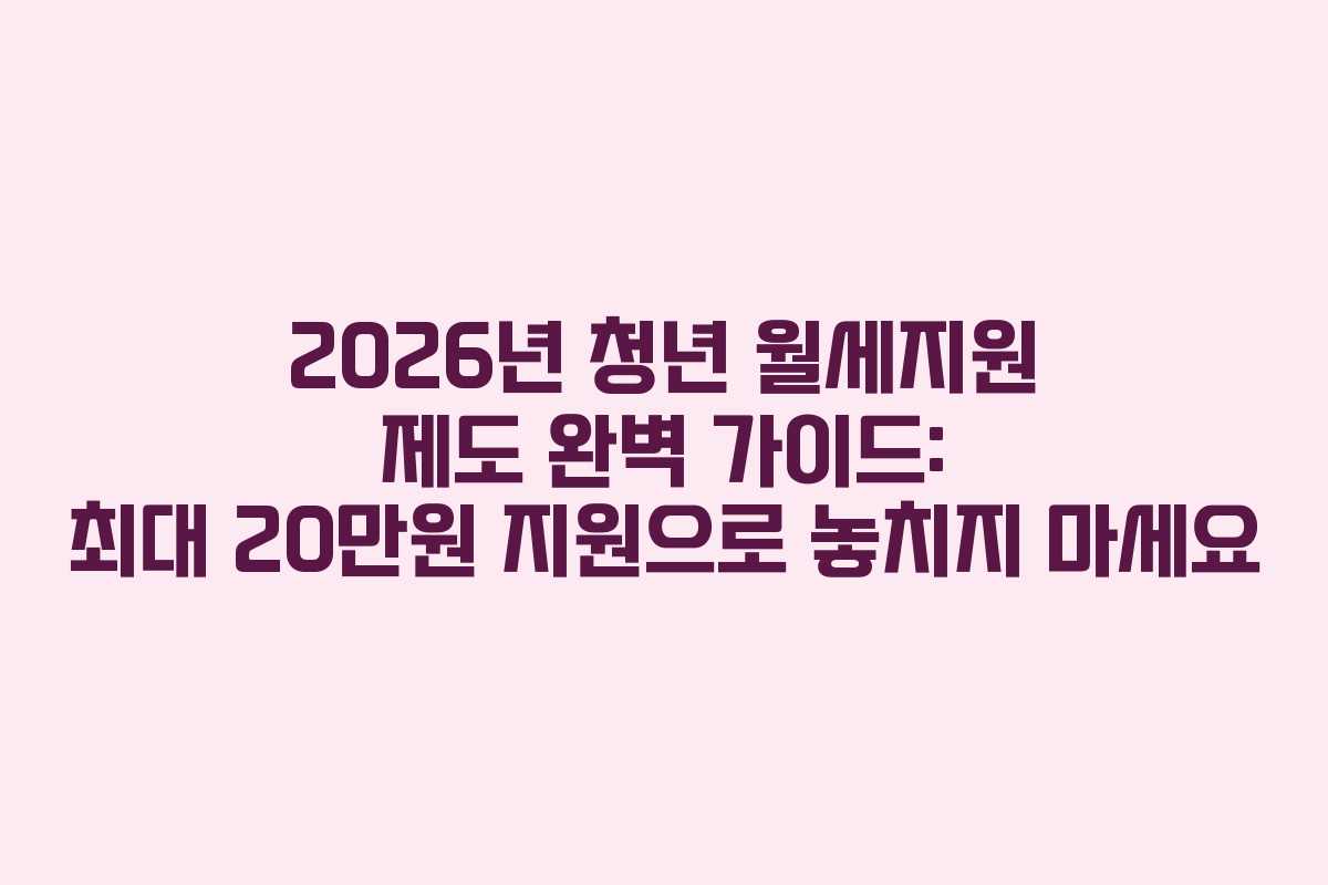 2026년 청년 월세지원 제도 완벽 가이드: 최대 20만원 지원으로 놓치지 마세요