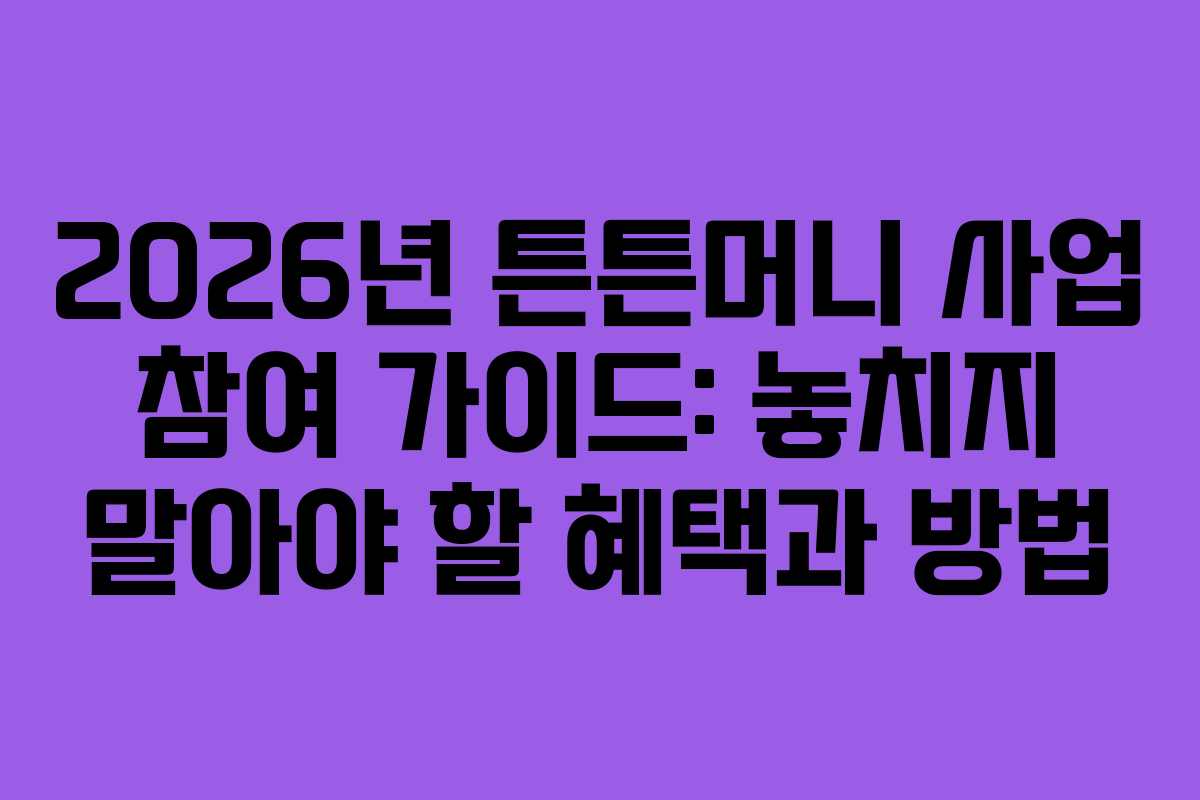 - 2026년 튼튼머니 사업의 개요 및 혜택