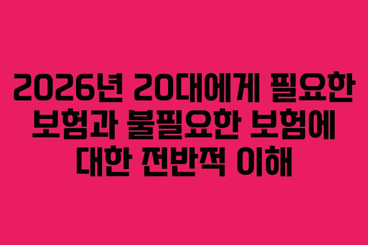 2026년을 기준으로, 20대가 보험을 고려할 때 꼭 알아야 할 사항들을 정리한다. 보험의 선택은 재정적 부담을 줄이고 미래에 대한 안정성을 확보하는 데 중요한 역할을 하므로 신중하게 접근해야 한다. 이 시기에는 보험료가 비싸지기 전에 최소한의 구조를 갖추는 것이 필요하다. 이 글에서는 20대가 꼭 필요한 보험과 굳이 가입할 필요가 없는 보험을 구별하여 안내할 것이다.