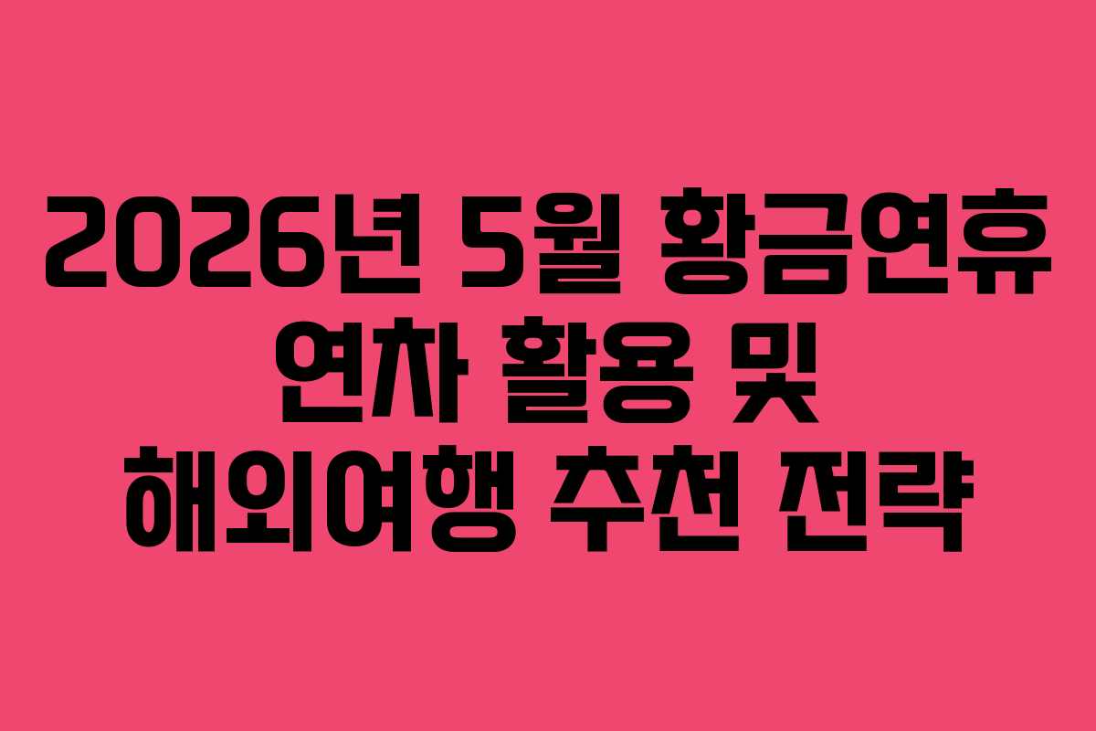 2026년 5월은 황금연휴를 활용하기에 최적의 시기로, 연차를 잘 활용하면 긴 휴가를 즐길 수 있습니다. 어린이날과 부처님 오신 날이 위치한 이 시기에 직장인들이 어떻게 연차를 조합하여 여행을 계획할 수 있는지에 대한 가이드를 제공합니다. 이 글에서는 연차를 활용한 여행 전략과 더불어 해외여행 추천지에 대한 정보도 포함되어 있습니다.