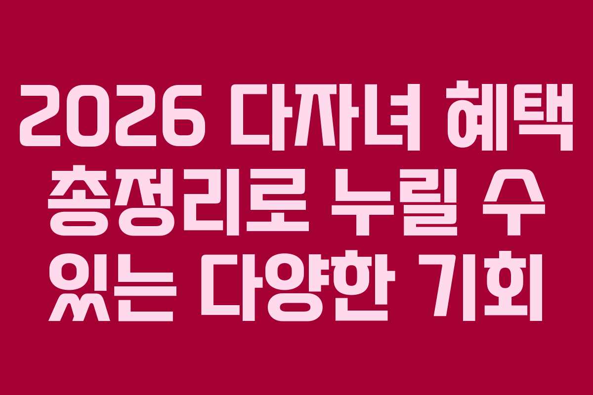 이처럼 다자녀 가정에 대한 다양한 혜택이 마련되어 있습니다. 각 가정은 이러한 지원을 통해 경제적 부담을 줄이고, 자녀 양육에 필요한 환경을 조성할 수 있습니다. 필요한 혜택을 꼭 확인하고 적극적으로 활용하기 바랍니다.